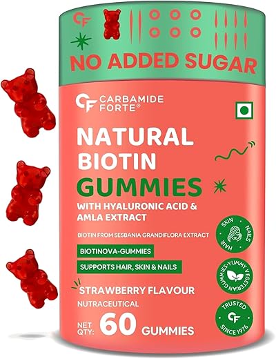 Carbamide Forte Biotin Gummies for Hair Skin & Nails Supplement 60 Veg Gummies Strawberry & Orange Flavour