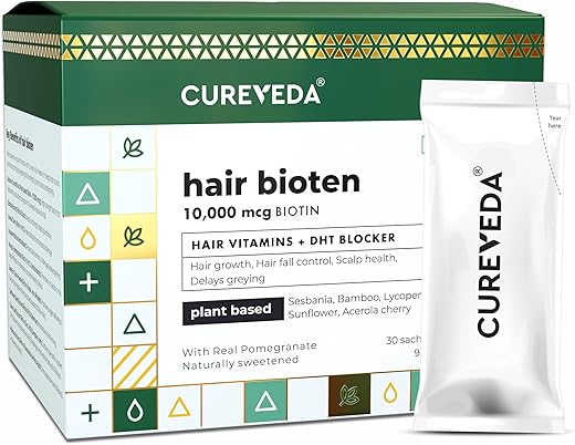 Cureveda GROW Plant Based Biotin 10000mcg powder (30 servings) Hair Nutrition, Hair fall,Premature greying, Hair Growth, Healthy Scalp-150gm
