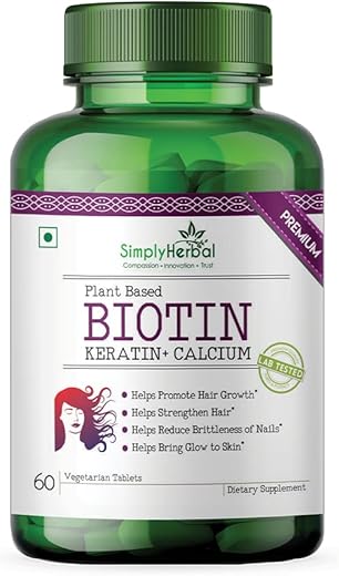 - ULTIMATE NOURISHMENT: Simply Herbal Biotin Supplement with Calcium and Keratin provides ultimate nourishment to stimulate growth, enhance strength and promotes hair & nails health. Our unique formula includes biotin and Keratin Bamboo Extract to help get your glow back from the inside out, without having to buy separate supplements